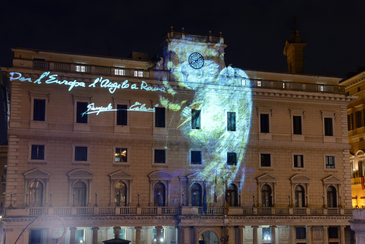 L’istallazione luminosa della presenza angelica nella notte romana avrà inoltre lo scopo di sottolineare la rinnovata attualità dell’arte figurativa di un autore contemporaneo che è sempre più chiamato dalle istituzioni a valorizzarne gli eventi. Il tema dell’opera diviene fonte di richiamo ai valori civili e morali più alti per tutti e per le autorità presenti a Roma in occasione del compleanno dell’Europa.
