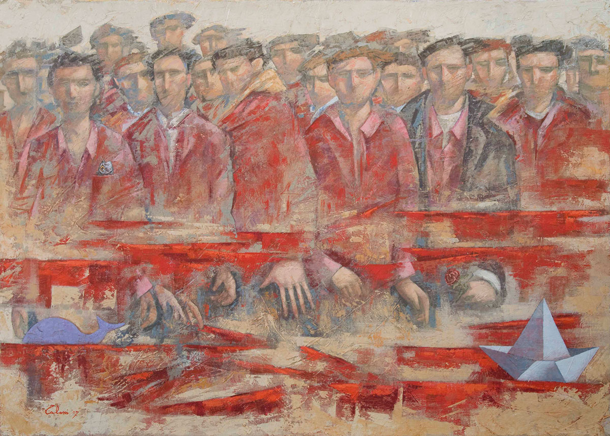 Nascono così L’Ombra dell’Eroe e in seguito Mille Uomini. L’Ombra dell’Eroe fu consegnata al Presidente Napolitano dal Senatore A.Marcucci, presidente del Comitato per le Celebrazioni ed è collocata nella Pinacoteca del Quirinale mentre il dipinto Mille Uomini, opera ispirata alle gesta dei Mille di Garibaldi, si trova al Museo Centrale del Risorgimento al Vittoriano in Roma.